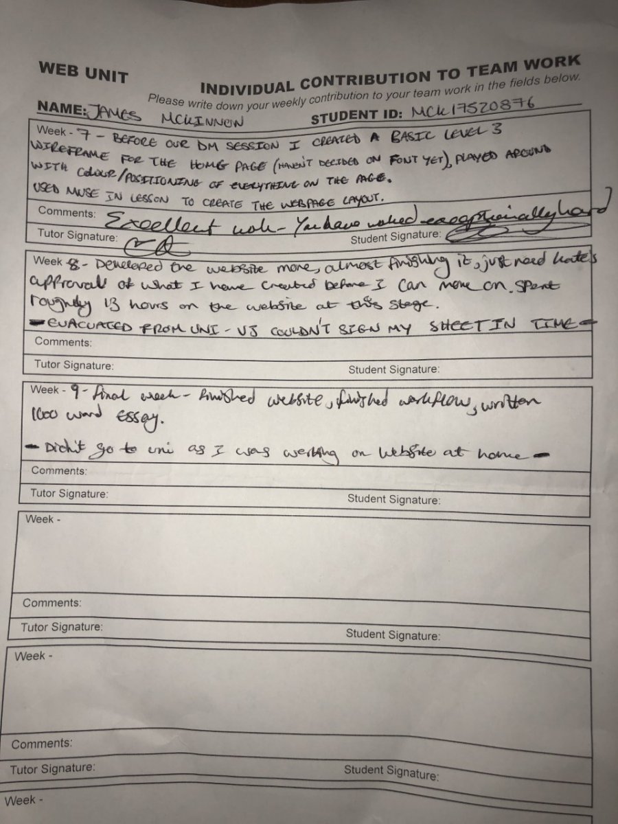 Individual Contribution weeks 1, 2, 3, 4, 5, 6