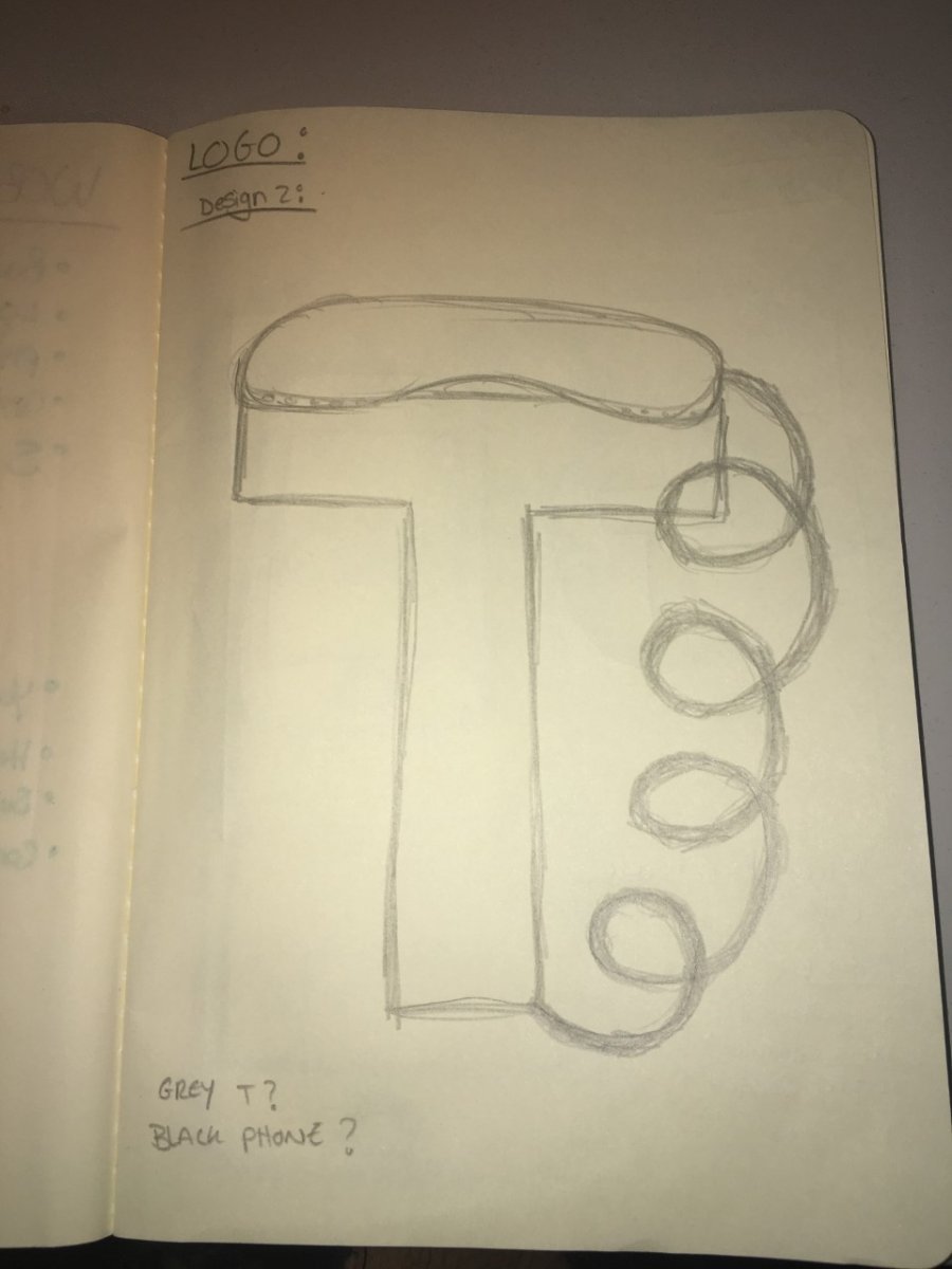 The first design is a simple 'T' with a cord phone coming from the bottom and connecting to a headset of a phone which is sitting on top of the 'T'. I personally love this design as it is so simple and easy to understand as the 'T' stands for 'TEEN' and when I think of 'hotline' I think of a corded phone and calling from a classic designed phone, however most teens wont remember them so I designed a modern headset corded phone. I have also designed this in illustrator which didn't take too long, about an hour because I was struggling to create the cord from the phone as I initially tried to do it by drawings circles until I realised I can use the pen tool and then it was super quick to develop.