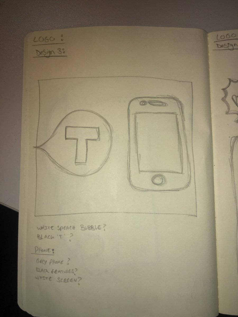 The second design is also one which displays the 'T' as I feel like the 'T' works really well in our branding and image to help people know our name, however this one is in a speech bubble which is next to a smartphone and is there to identify that our company is about smartphones. This is surrounded with a black boarder and that actually helps it stand out really well. I think I may have made this design a little too complicated with the two objects and I'm unsure it will work as a logo but might work well as a website graphic. creating this design in illustrator was actually super easy as each shape is very easy to create, it took no time at all to create which I love because it means my skills in illustrator are at least improving.