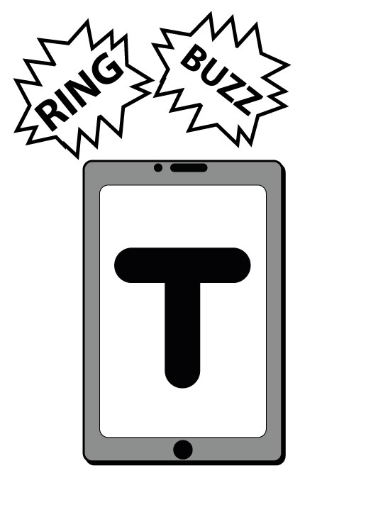 Finally we have my third design and I have kept the 'T' from the first design and the smartphone from the second design. This is to see what I can do by taking the best qualities from the first and second to produce something which might be incredible. I have kept the smartphone from the second design but instead of having the speech bubble I have created little spikey bubble type things to represent noises/actions smartphones do when they get notifications. I incorporated the 'T' inside the phone as if it is on the screen as me and Kate both liked the design from the initial logo created and though having something on the phone screen was really cool. I really like this design, I think more than design 2 simple because it makes more sense as an image. On the other hand it is very similar to design 2 in the way that it might not work as a logo but more as a graphic because there is a lot going in for it to be a simple logo. The creating of this in illustrator was so easy as I just copied the smartphone design from design 2 and then I created the spikey bubbles though making lots of premade stars and merging them together. I really like how efficient I am now being using illustrator.