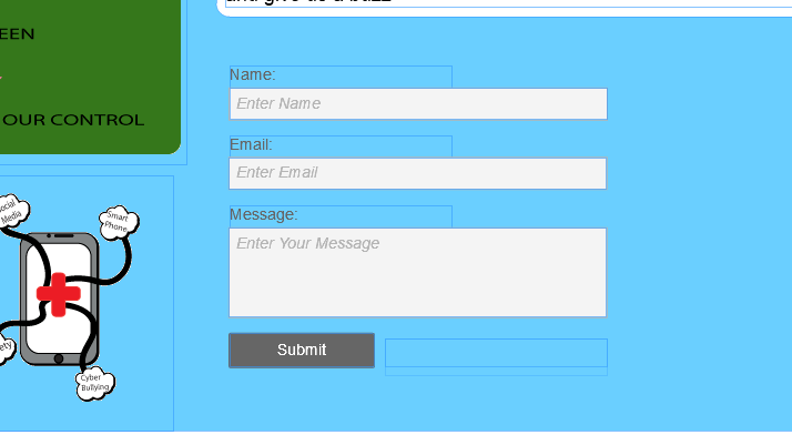 The second website graphic inserted onto the website is the original logo me and Kate created together in week 4 but my own development of it to make it look a bit more professional and finished. I have inserted this graphic into the 'Contact Us' page due to it potentially giving the user a topic title or idea of what to contact us about. I also feel that this graphic works well on this page as a summary of our website on the last page of the site.